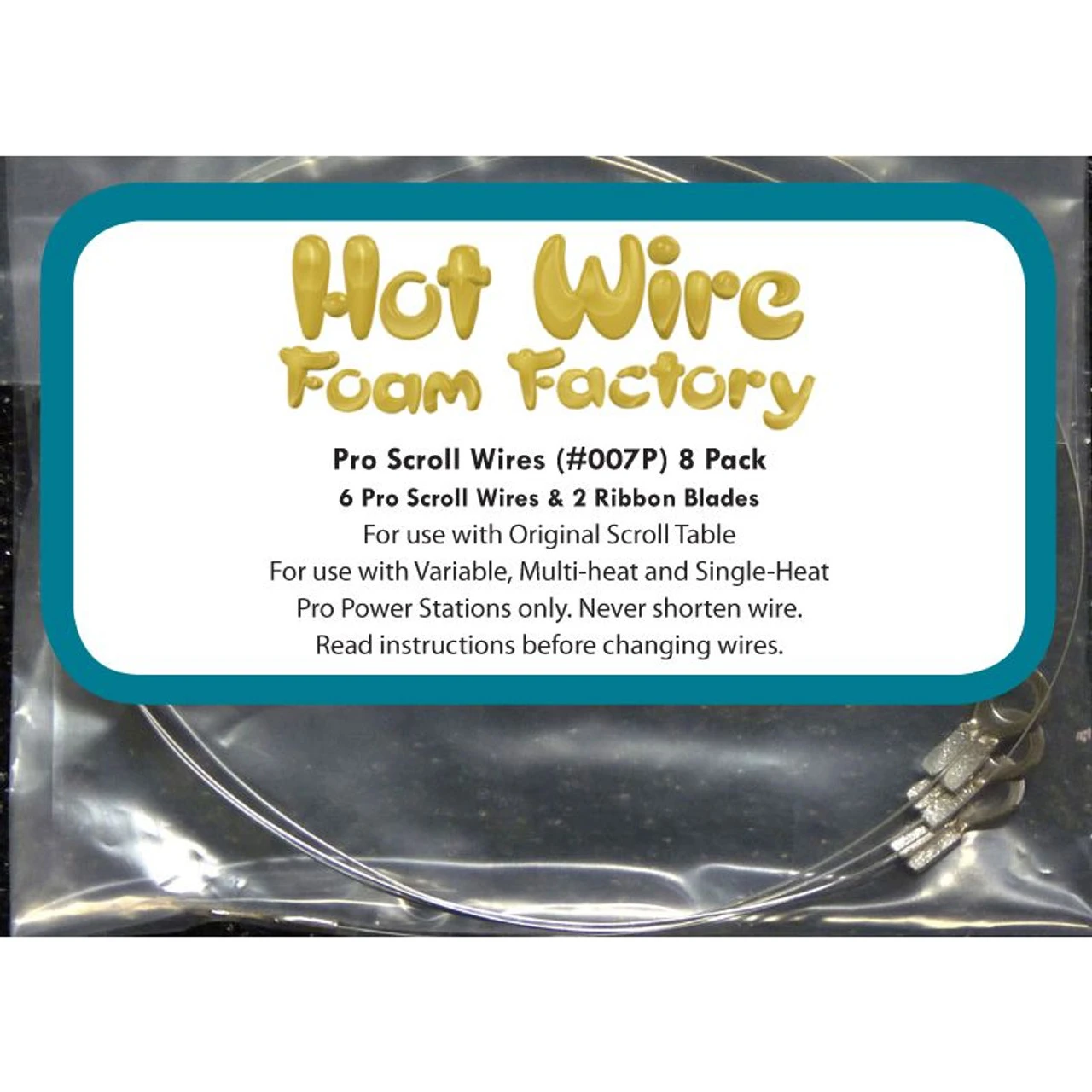 Six (6) 10.5-Inch Pro Scroll Table wires and two (2) shapeable flat wires for the Original Scroll Table, 16″ 3D Scroll Table and 24″ 3D Scroll Table. For use with the Pro Power Stations only. Hot Wire Foam Factory Scroll Table Pro Wires