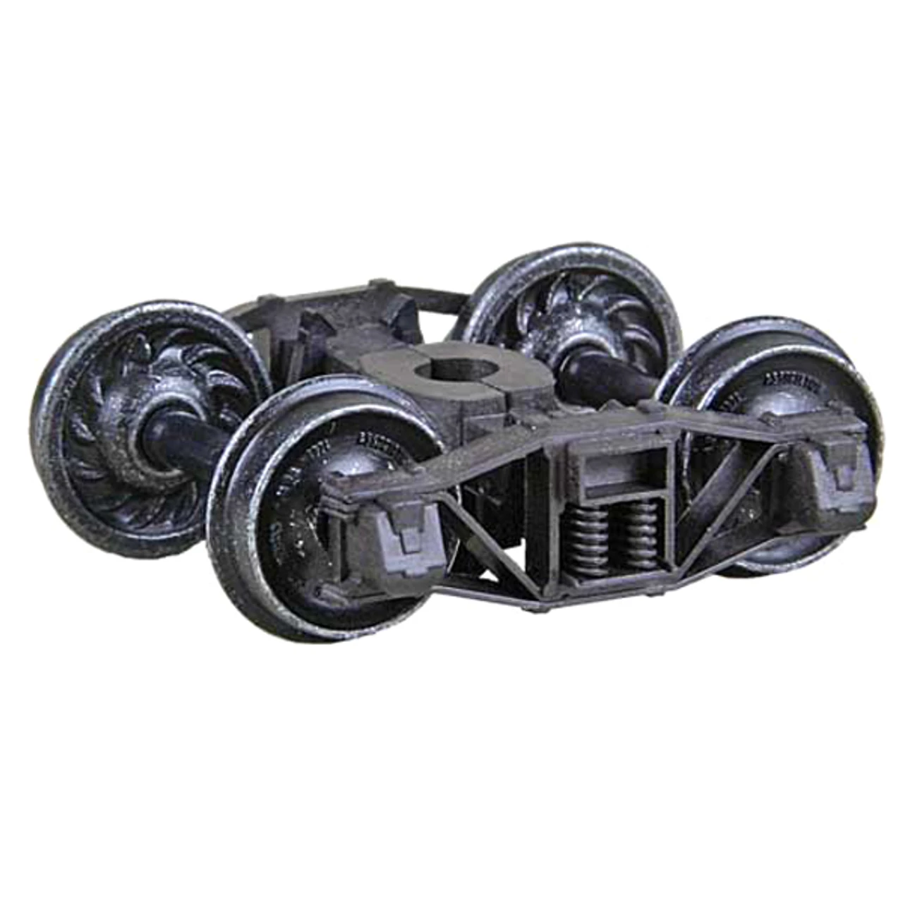 Arch Bar Self Centering Trucks “HGC” Two Piece Fully Equalized Trucks 1pr. Mounts with a #2 or 2-56 screw. The Arch Bar Truck is typical of these trucks from around the turn of the century. Despite the age of these trucks, they saw more than seventy years of service in some applications. The arch bar was allowed in interchange service until about 1941. On railroads that were not common carriers such as logging or other industrial lines, this restriction of the trucks did not apply since the trucks did not operate on rails other than the owner’s. The Northern Pacific, for example, used truss rod frame maintenance of way cars fitted with arch bar trucks well into the early 1970’s. Many logging railroads also used them at least until then. Truck Features • Self Centering Action – Trucks self align themselves parallel with the car for easier placement on track. • Code 110 (.110) 33″ ribbed back wheels • “HGC” Weighs nearly the same as Metal Trucks • Superior Rolling Ability. • Brake Pads • Accurate markings • Incredible detail True to prototype • Non-magnetic Metal Wheels • Highly Flexible Fully Equalized Trucks • Smooth tracking Free rolling Contoured Insulated Axles • RP-25 Free rolling wheels • Patent number 7,434,518 B2