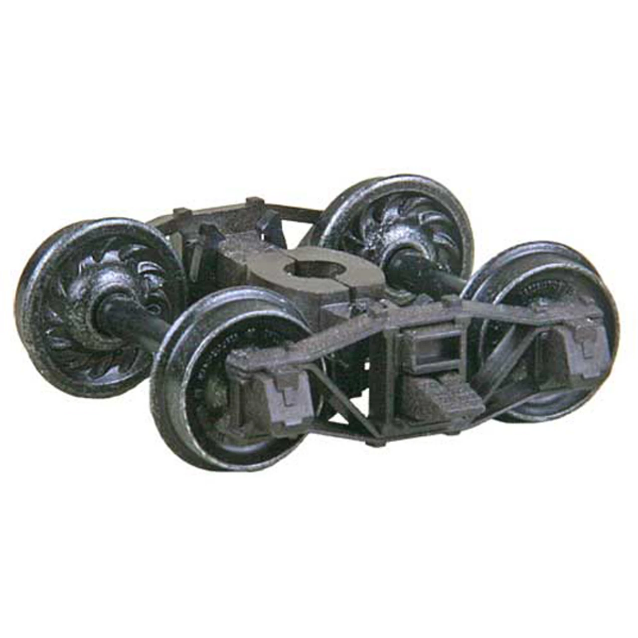 Arch Bar Self Centering Caboose Trucks (Leaf Spring) “HGC” Two Piece Fully Equalized Trucks 1pr. Mounts with a #2 or 2-56 screw. Mounting Screws not Included. Truck Features • Self Centering Action – Trucks self align themselves parallel with the car for easier placement on track. • Code 110 (.110) 33″ ribbed back wheels • “HGC” Weighs nearly the same as Metal Trucks • Superior Rolling Ability. • Brake Pads • Accurate markings • Incredible detail True to prototype • Non-magnetic Metal Wheels • Highly Flexible Fully Equalized Trucks • Smooth tracking Free rolling Contoured Insulated Axles • RP-25 Free rolling wheels • Patent number 7,434,518 B2