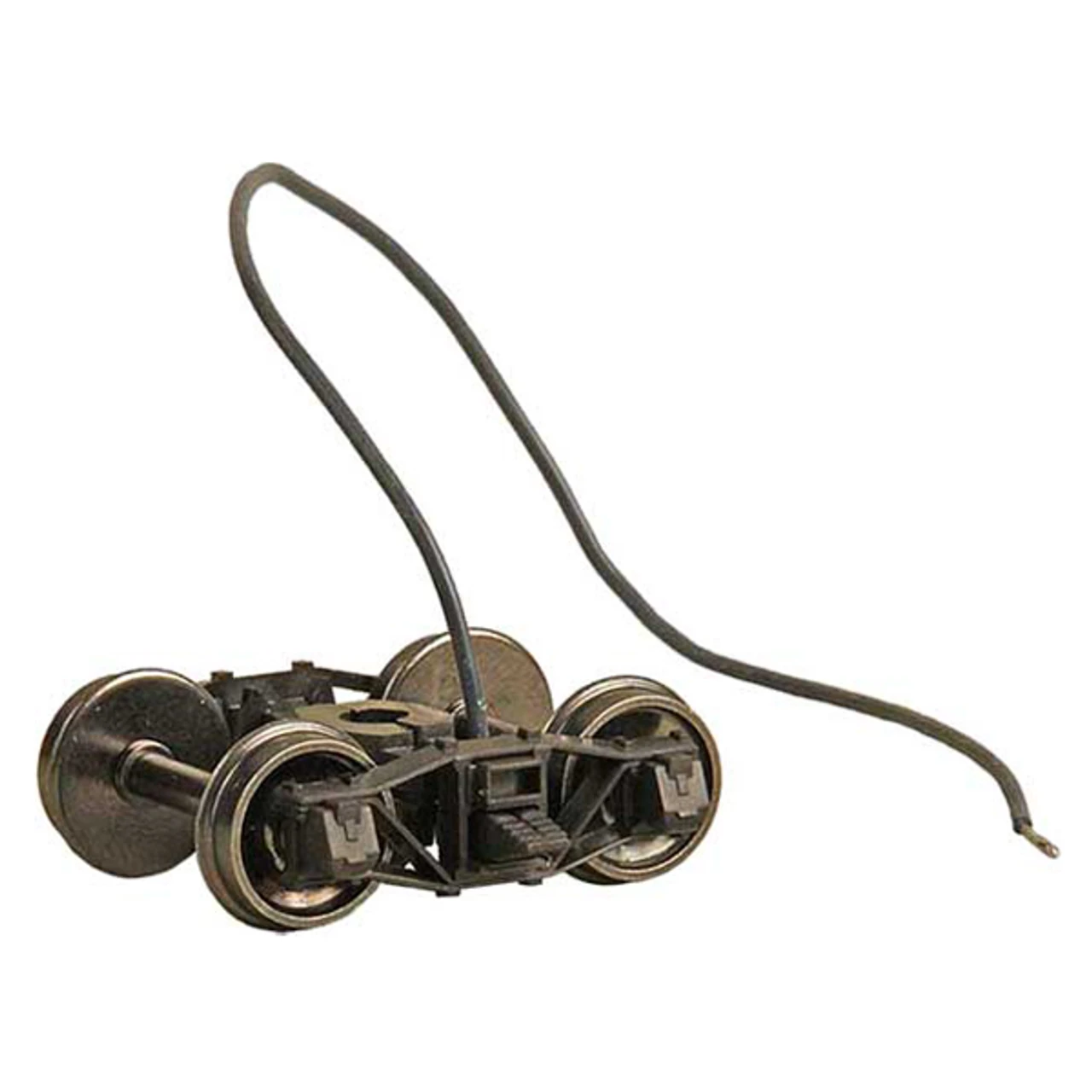 Arch Bar Electrical Pickup Caboose Trucks (Leaf Spring) “HGC” Two Piece Fully Equalized Trucks 1pr. Mounts with a #2 or 2-56 screw. Mounting Screws not Included. Truck Features • Self Centering Action – Trucks self align themselves parallel with the car for easier placement on track. • Code 110 (.110) 33″ smooth back wheels • “HGC” Weighs nearly the same as Metal Trucks • Superior Rolling Ability. • Brake Pads • Accurate markings • Incredible detail True to prototype • Non-magnetic Metal Wheels • Highly Flexible Fully Equalized Trucks • Smooth tracking Free rolling Contoured Insulated Axles • RP-25 Free rolling wheels • Patent number 7,434,518 B2