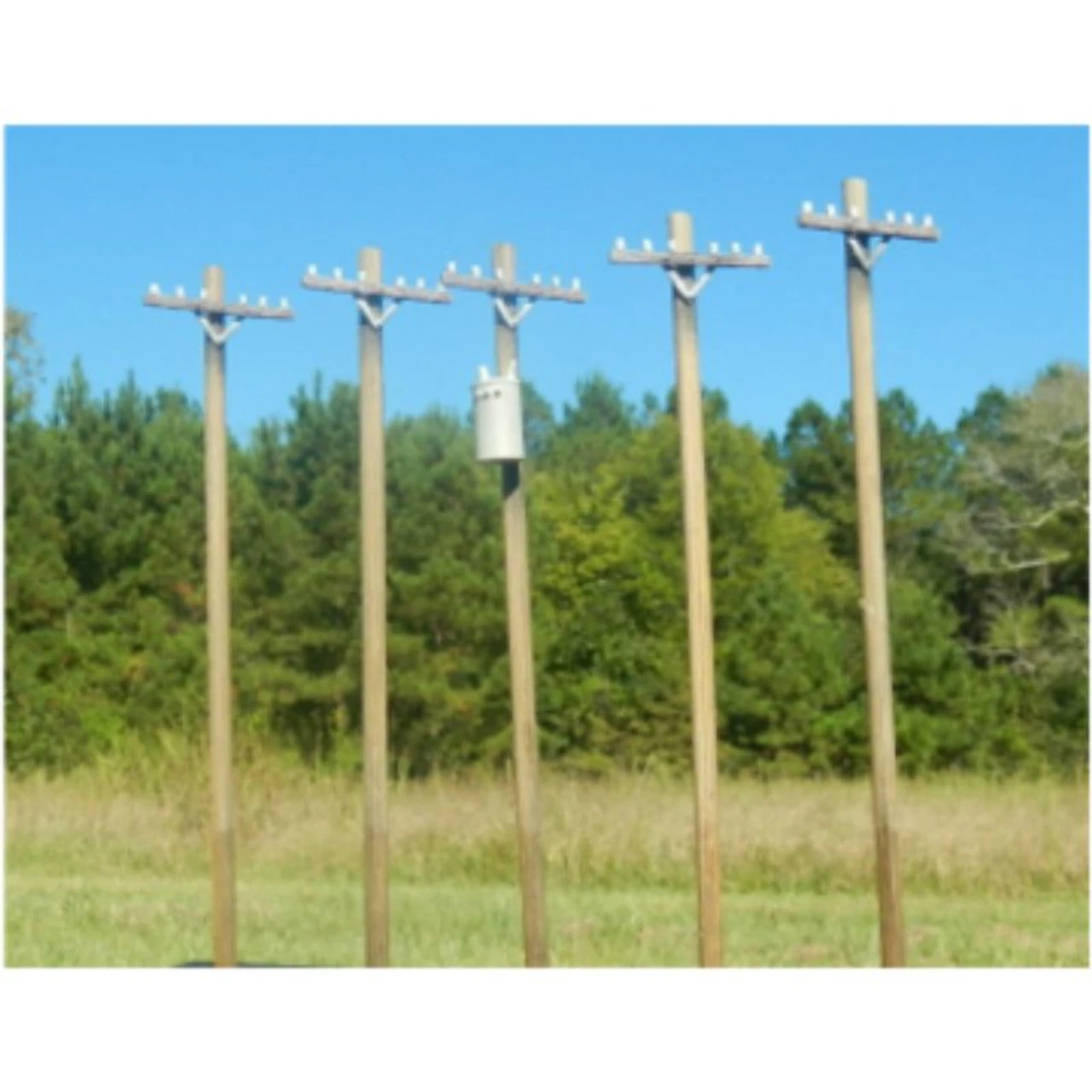 No, these aren’t real power poles, but they look like it! This is our HO Scale Power Pole Set. The kit includes 5 natural poles that come already painted depicting weather-stained, pressure treated wood. Showcase Miniatures HO Scale 40ft Power Pole Set
